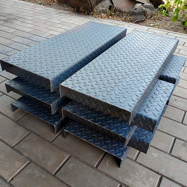 Рифленые листы применяются для комплектации лестничных конструкций производственного назначения. Они имеют небольшие выпуклости на поверхности, которые обеспечивают хорошее сцепление и предотвращают скольжение. Однако рифленые листы менее подходят для уличных условий из-за отсутствия отверстий для отвода влаги.