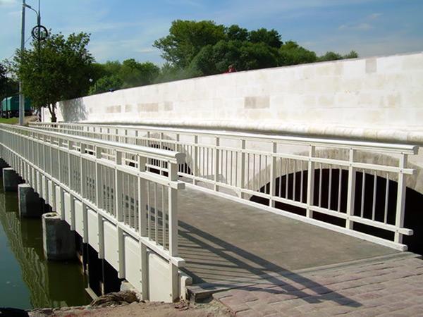 Мостовые ограждения применяются на транспортных коммуникациях, таких как мосты и путепроводы. С их помощью предотвращают съезд автомобильного транспорта с дороги или моста, а также для предотвращения выезда на встречную полосу. Они могут быть односторонними или двухсторонними, одноярусными или двухъярусными, в зависимости от конкретных условий эксплуатации.